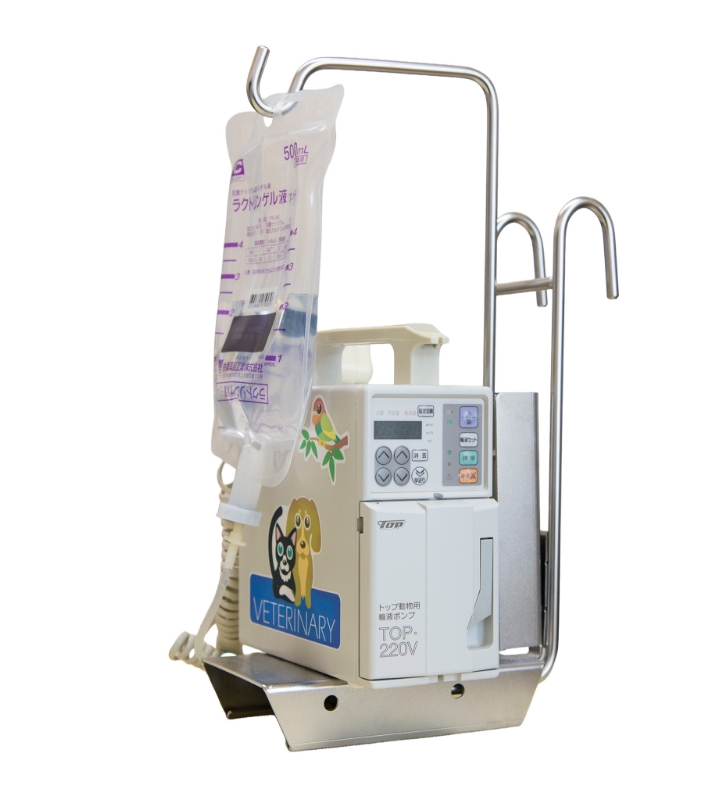 薬剤等を点滴投与する機器。動物がチューブをふんだり、からまったりした場合、信号音で知らせます。