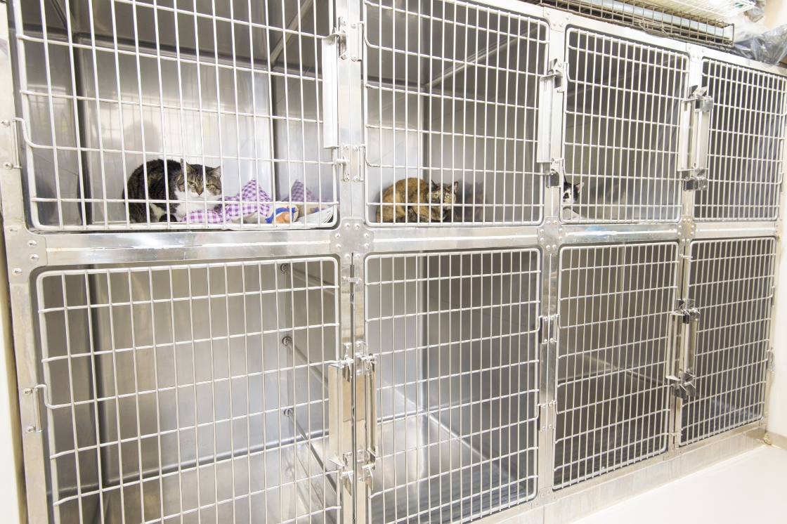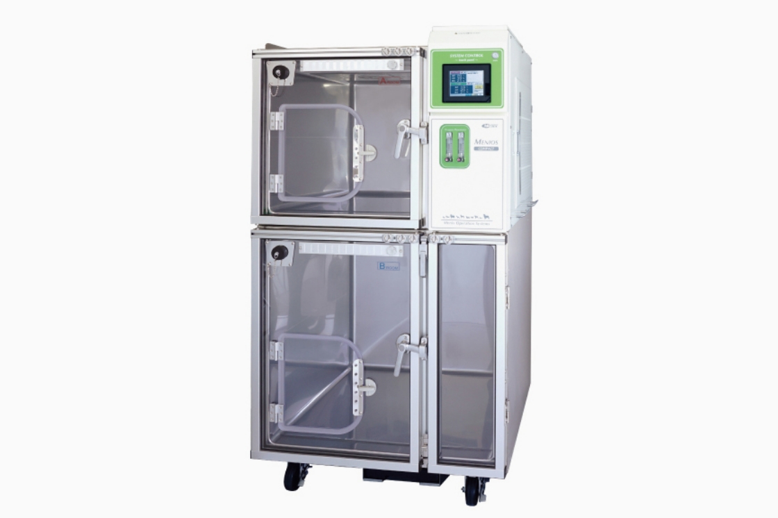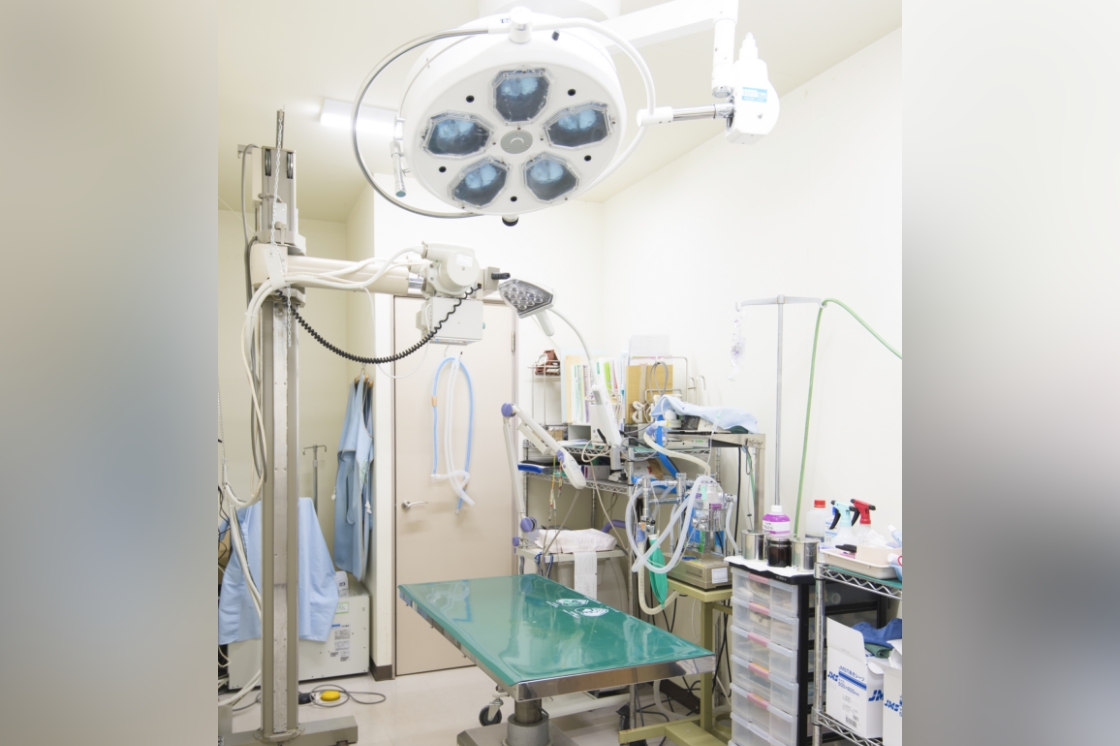 心臓や肺の病気で呼吸が苦しい動物が入り、症状をコントロールする酸素室。室内は適度な湿度が保たれ、酸素濃度が高いため、動物の呼吸を楽にすることができます。手術後の回復室としても使用できます。